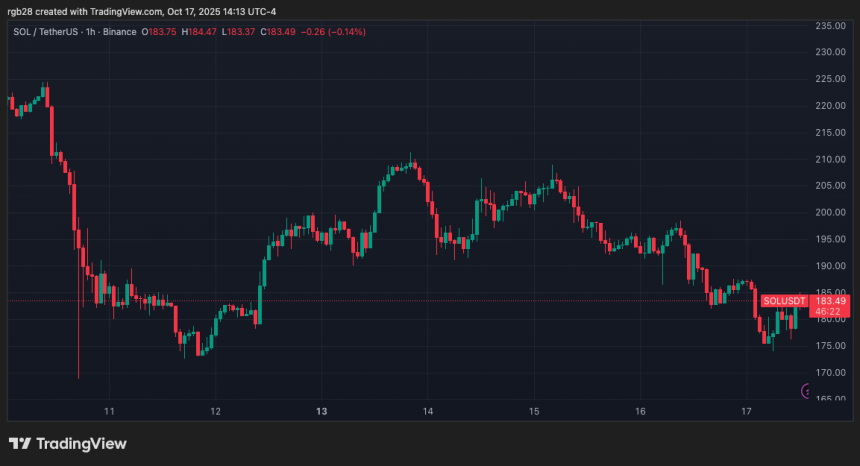 As of this writing, SOL is trading at $182, a 12.6% decline in the daily timeframe.