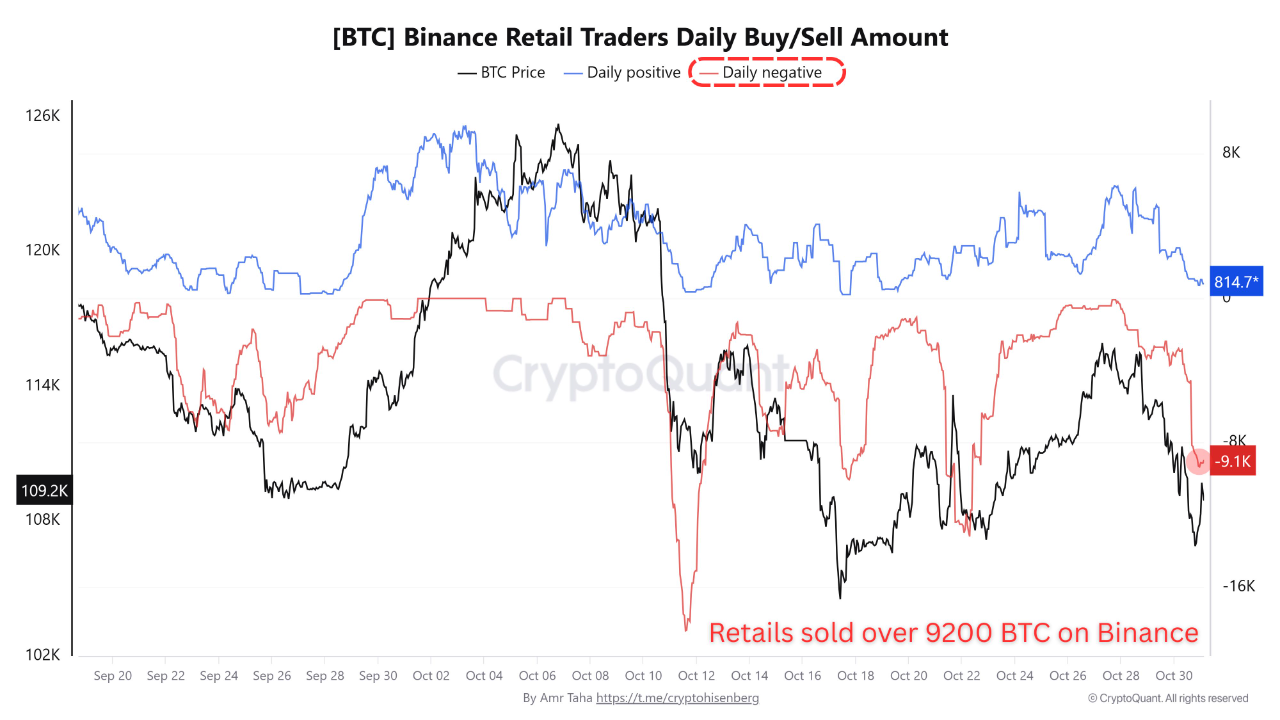 - Binance retail traders drove over $1B in Bitcoin sales, marking renewed short-term selling pressure across the exchange.