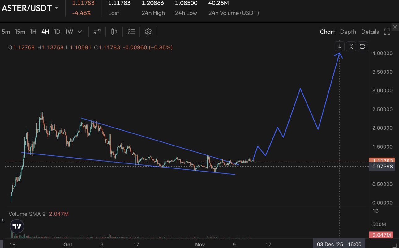 Jason assessed that ASTER had broken out of the upper boundary of the Falling Wedge pattern, something that usually signals the beginning of a potential new rally. His stated target is around $4, a level that immediately sparked heated discussion in various communities, especially since such movements often begin when the market is still sluggish.