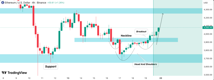 The initial breakout above the $4,000 resistance shows that bulls are picking up momentum, and the only hurdle now is to keep this momentum going. If the momentum is sustained, then the next target for the Ethereum price to beat would be at the $4,285 level. Once this level is broken, then it is only a matter of time before Ethereum rallies in what could be another campaign for new all-time highs.