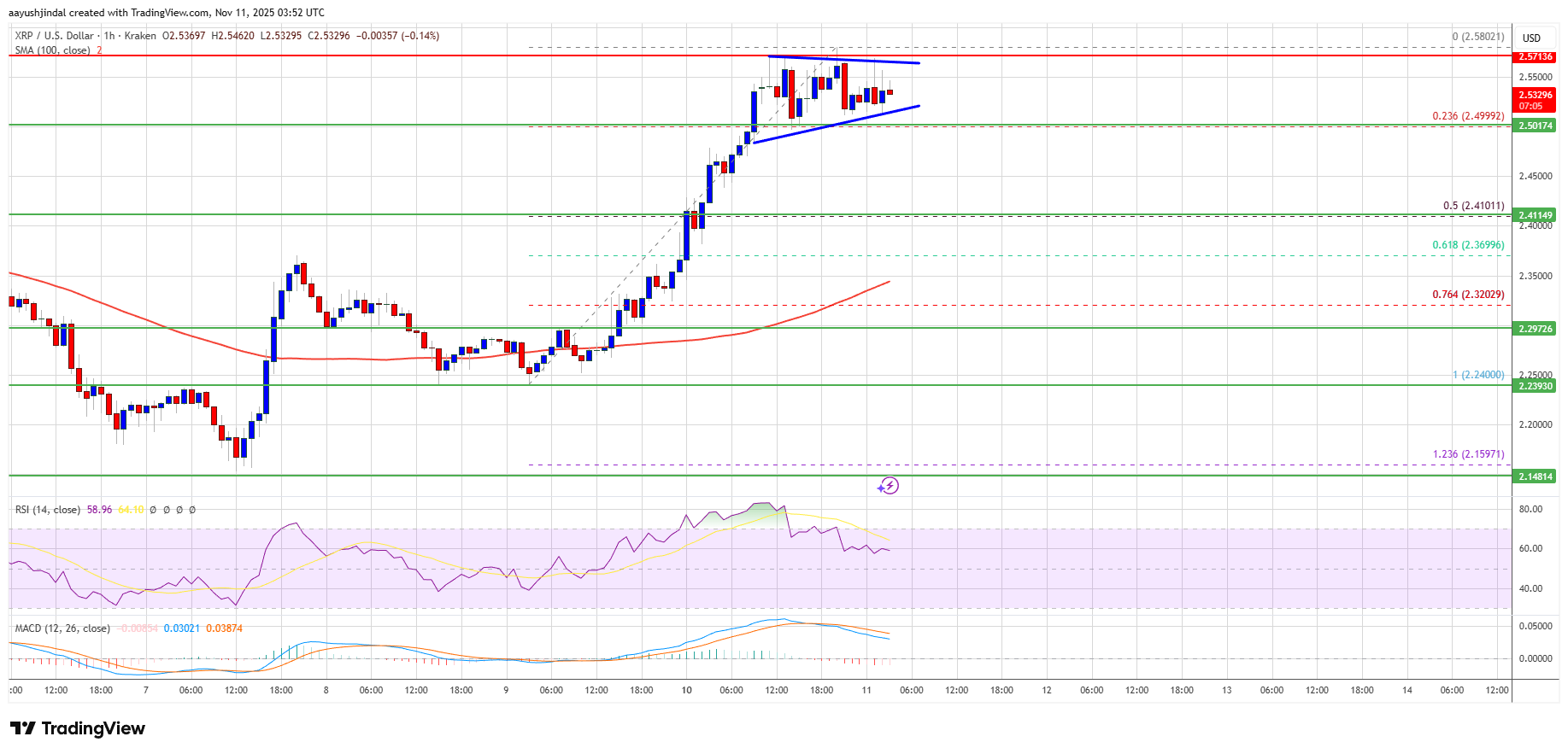 XRP price started a decent increase above $2.420. The price is now consolidating and might aim for more gains above the $2.580 level.